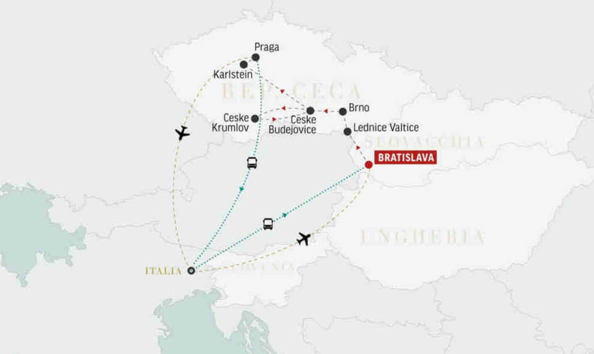 Alla scoperta di: Bratislava, Lednice-Valtice, Brno, Hluboka, Cesky Krumlov, Ceske Budejovice e Praga.