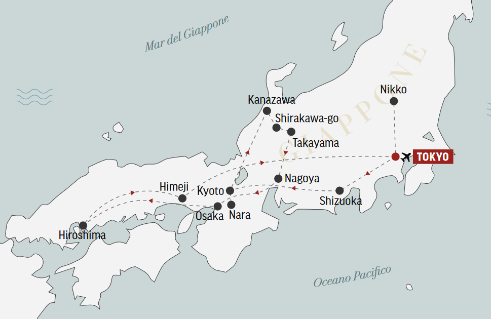 Alla scoperta di: Tokyo, Shizuoka, Kyoto, Nara, Kanazawa, Shirakawa-go, Takayama, Osaka, Hiroshima, Himeji.