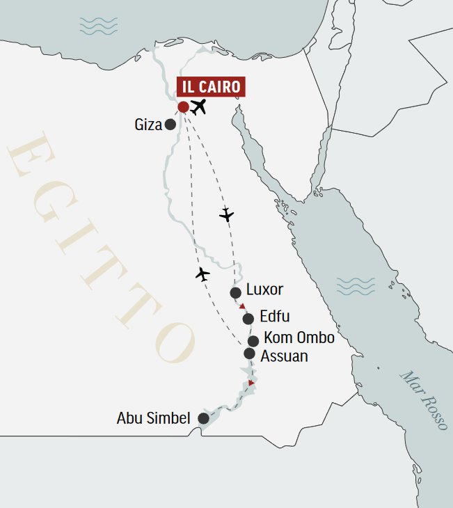 Visitare l’Egitto significa conoscere una civiltà millenaria. Visiteremo templi austeri e imponenti piramidi, ammireremo un paesaggio incantevole, navigando sulle tranquille acque del Nilo.