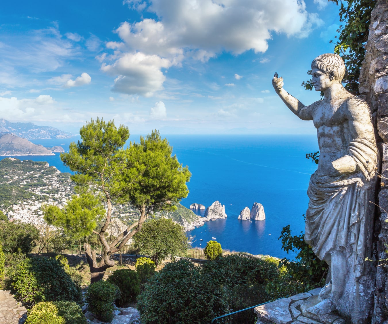 L’intera giornata di oggi è dedicata alla visita dell’isola di Capri, che raggiungiamo in motonave. Arriviamo in minibus ad Anacapri e visitiamo Villa San Michele, da cui si può ammirare uno splendido panorama. Ritornati a Capri passeggiamo fino ai Giardini di Augusto, da dove si può godere di un panorama unico sui famosi Faraglioni. Dopo il pranzo libero, condizioni meteo permettendo, partecipiamo a un’escursione facoltativa in barca tra suggestive grotte e pittoresche calette. Rientriamo a Ischia e ceniamo in hotel.