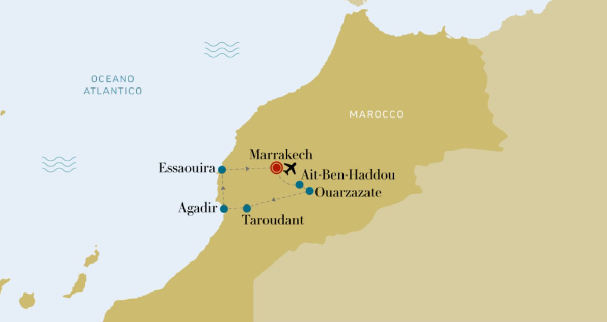 Marrakech – Essaouira – Agadir – Taroudant – Ouarzazate – Ait-Ben-Haddou