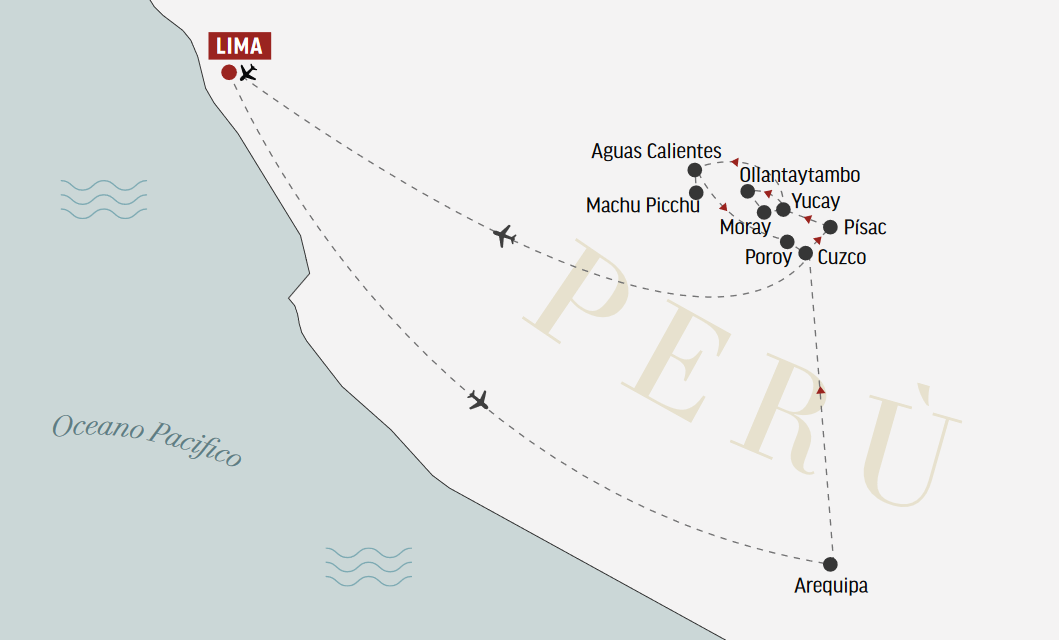 Alla scoperta di: Lima, Arequipa, Cuzco, Valle Sacra, Yucay, Aguas Calientes, Machu Picchu, Cuzco.
