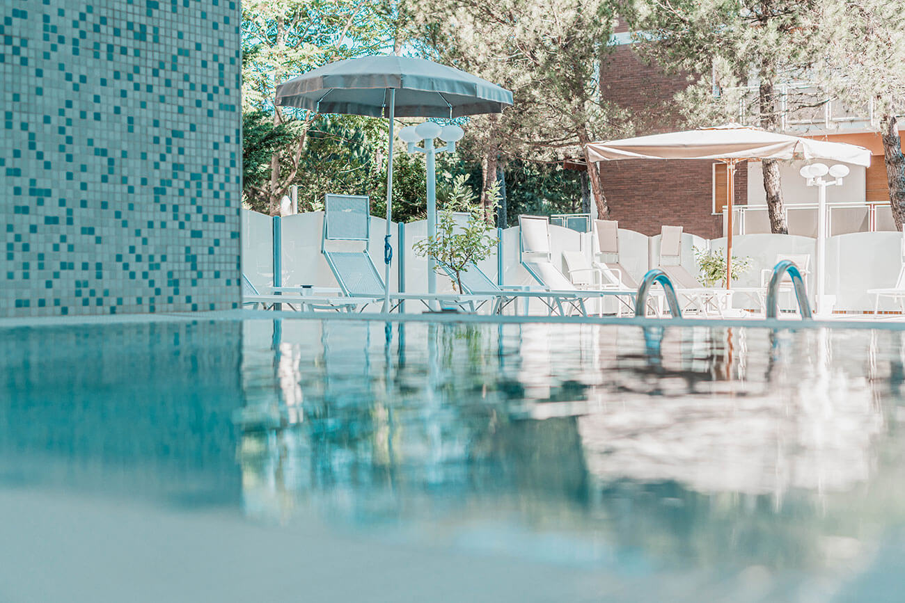 Copre una superficie di 120 mq, dispone di idromassaggio e dotata di copertura telescopica. Riscaldata da aprile a fine settembre, è attrezzata con giochi per bambini, lettini, ombrelloni, docce e spogliatoi.