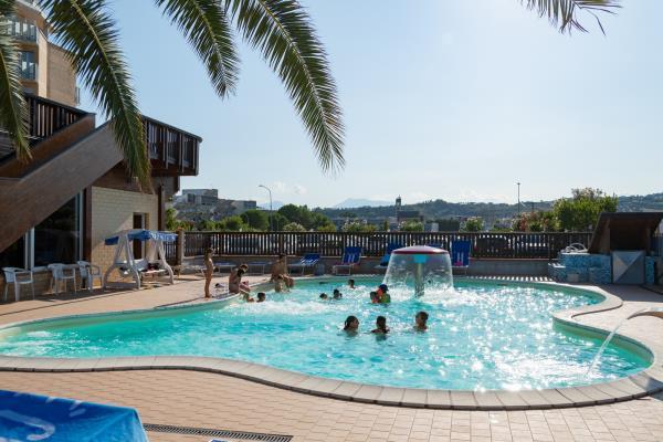 Spiaggia privata con bagnino, un ombrellone e due lettini, chiosco bar, cabine, spogliatoio e servizi, giochi per bambini, ping-pong, beach-volley, due piscine con giochi d’acqua e idromassaggio per adulti e bambini.