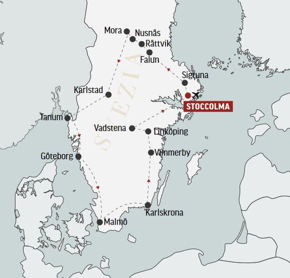 Alla scoperta di: Stoccolma, Sigtuna, Dalecarlia, Goteborg, Malmo, Karlskrona, Vimmerby, Linkoping, Vadstena.