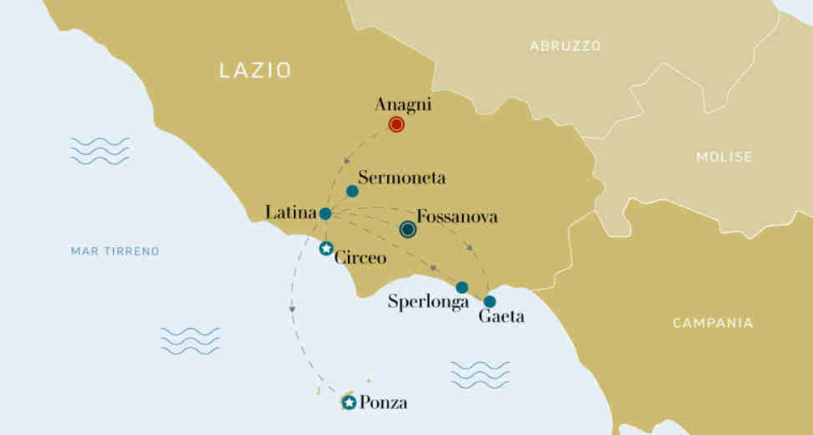 Alla scoperta di: Anagni, Gaeta, Ponza, Sermoneta, il Parco Nazionale del Circeo.